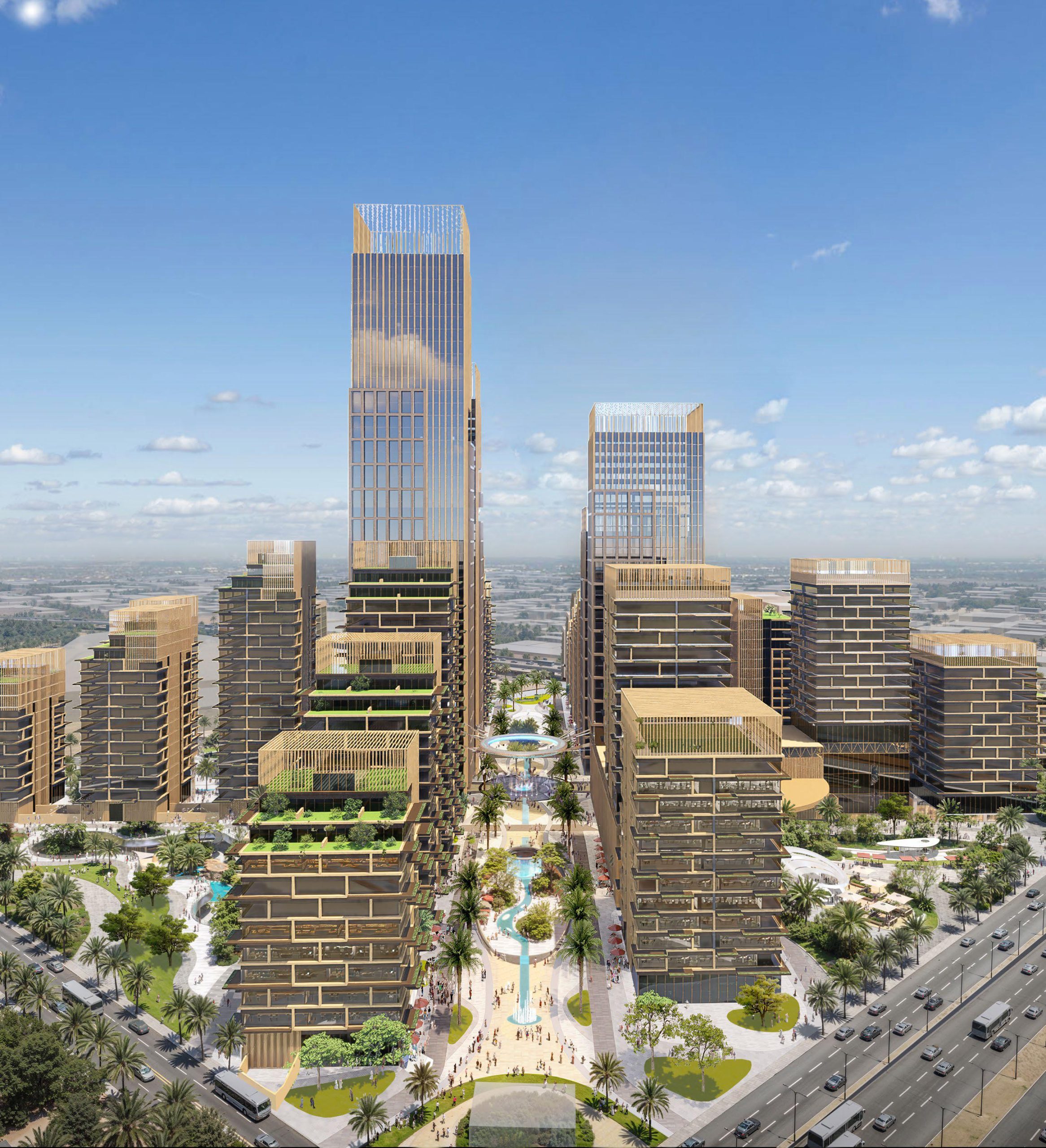 يعد مشروع "بارك سايد" تجسيداً لـ الفخامة الحضرية الممزوجة بالطبيعة، مقدماً نموذجاً متطوراً للحياة المتكاملة. تم تطوير التصميم المعماري بلمسة عصرية أنيقة، حيث تتناغم الأبراج متعددة الاستخدامات مع مسطحات واسعة من المساحات الخضراء والمسارات المائية. يتمحور المخطط الرئيسي حول محور مشاة أخضر مركزي يضمن تجربة بصرية وحركية سلسة، ويعزز من جودة الحياة من خلال توفير مناطق ظليلة للتنزه والاستجمام.